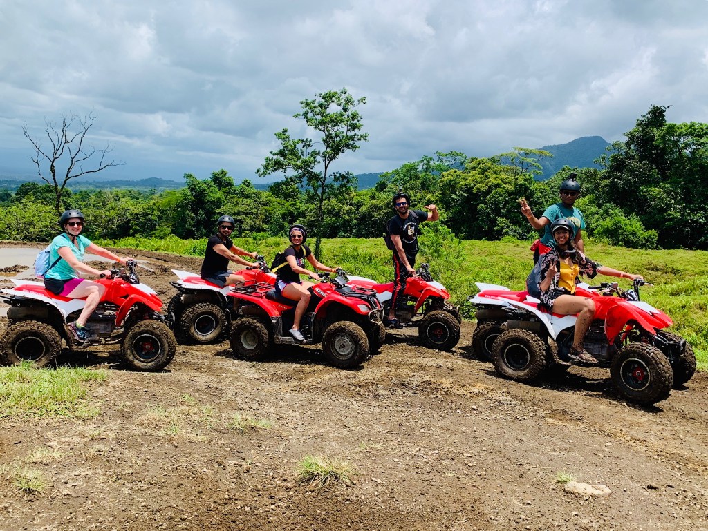 I have driven a quad bike in the sand dunes and a muddy trail before, but this activity is meant for a person who just wants more. We had made prior reservations with www.fortunawelcome.com which cost us $95 per person which included a delicious meal at the end. It was a 2.5 to 3-hour activity at the base of Arenal included a practice trail, a 2 km off road tracks and 2 km gravel road track which ended at the river. After a crazy ride on those tracks, a quick dip in turquoise-blue stream wound its merry way through the forest was the perfect end this heart-racing activity.